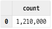 从集群对应的分区表中插入了 1210000 条数据。可以确认主集群中的数据已同步到从集群中。