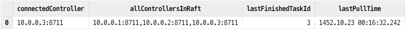 从集群最近一次拉取任务时通过控制节点 10.0.0.3:8711 进行连接,最近完成任务的 taskID 为 3。