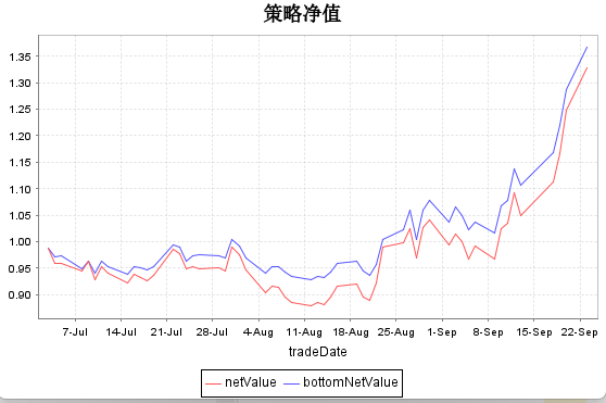 plot([netValue,bottomNetValue], totalPortfolios.tradeDate, "策略净值")