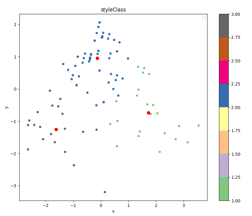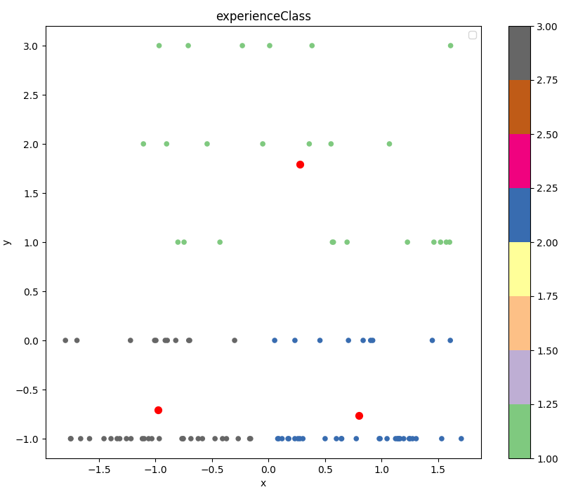 model = kmeans(experienceFactor[:,1:3],3,1000,,"k-means++")