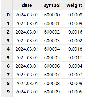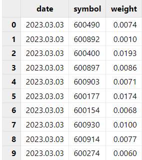 持仓表:对于持仓表,需要整理成包含日期、标的、每日持仓权重的表格。因为 Brinson 支持多期归因,表格中需要包含多期持仓的具体组合和权重。