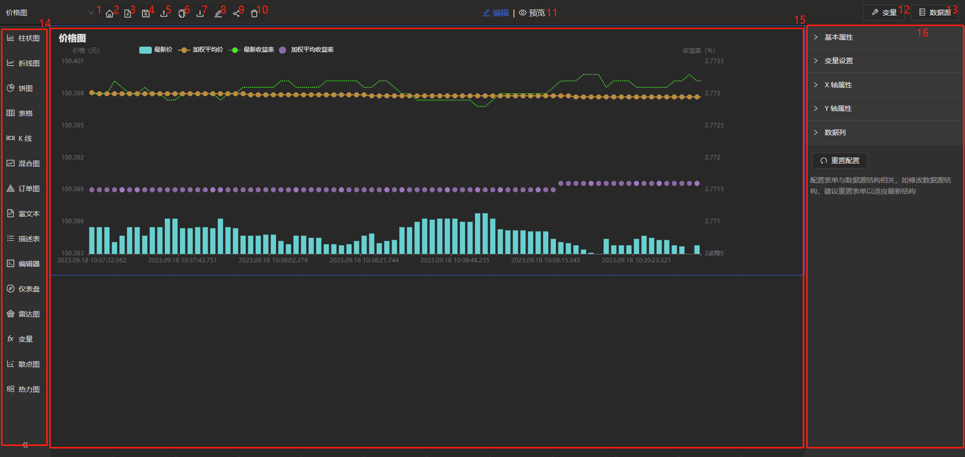 图表配置区:选中面板工作区的某一图表后才会显示,用于配置当前图表的信息。