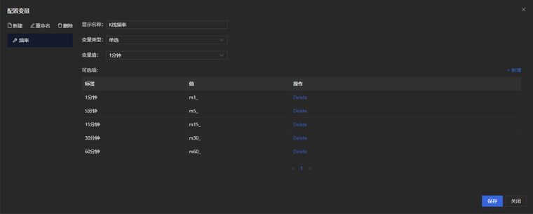 - 变量:用于动态控制仪表板中的查询元素,帮助用户在运行时更改数据源的特定参数,以便更灵活地分析和呈现数据。