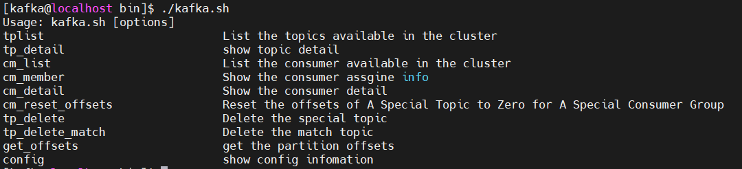kafka-tools 中提供了 3 个脚本,每个脚本不带参数执行时可以输出使用说明。