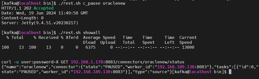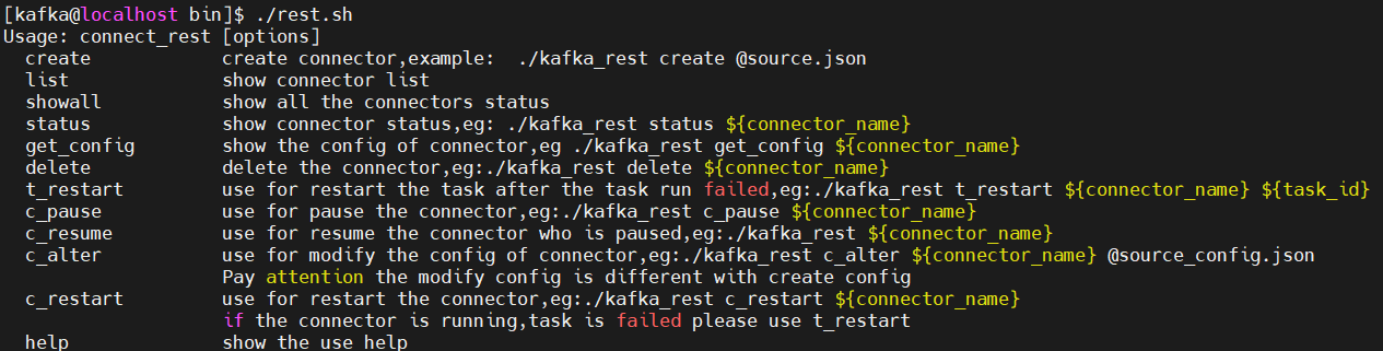 cd /KFDATA/kafka-tools/bin ./rest.sh showall