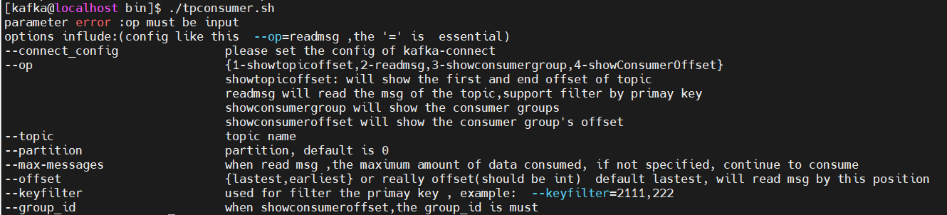 tpconsumer.sh 脚本使用时的参数,在不传递参数时会输出参数说明。