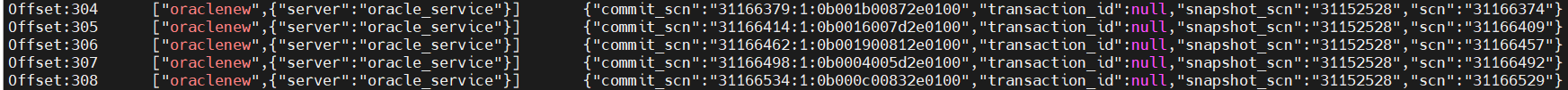 ./consume.sh --topic connect-offsets --from-beginning|grep oraclenew上图中代码中的 oraclenew 是source 同步任务的 connector name。已完成同步的增量数据的 SCN 在 commit_scn 上记录。
