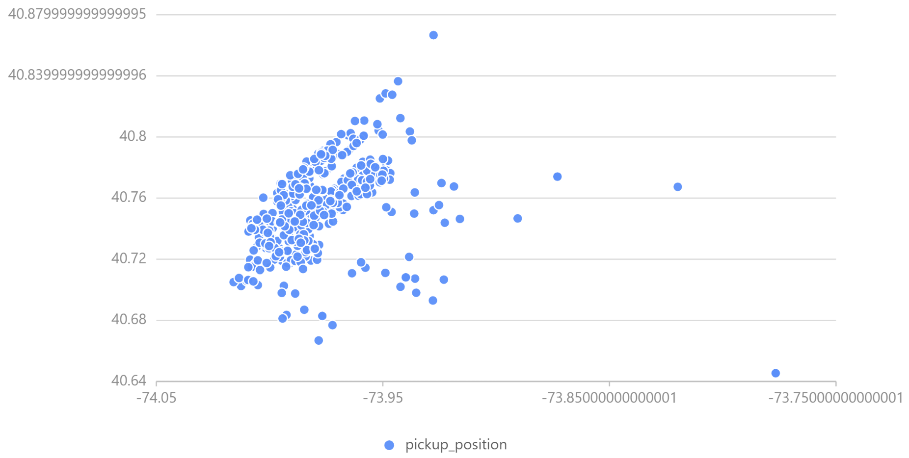 select pickup_latitude as latitude, pickup_longitude as longitude from predictTable where date(predictTable.pickup_datetime) == date(select max(pickup_datetime) from predictTable)图 10. 当日乘客上车位置