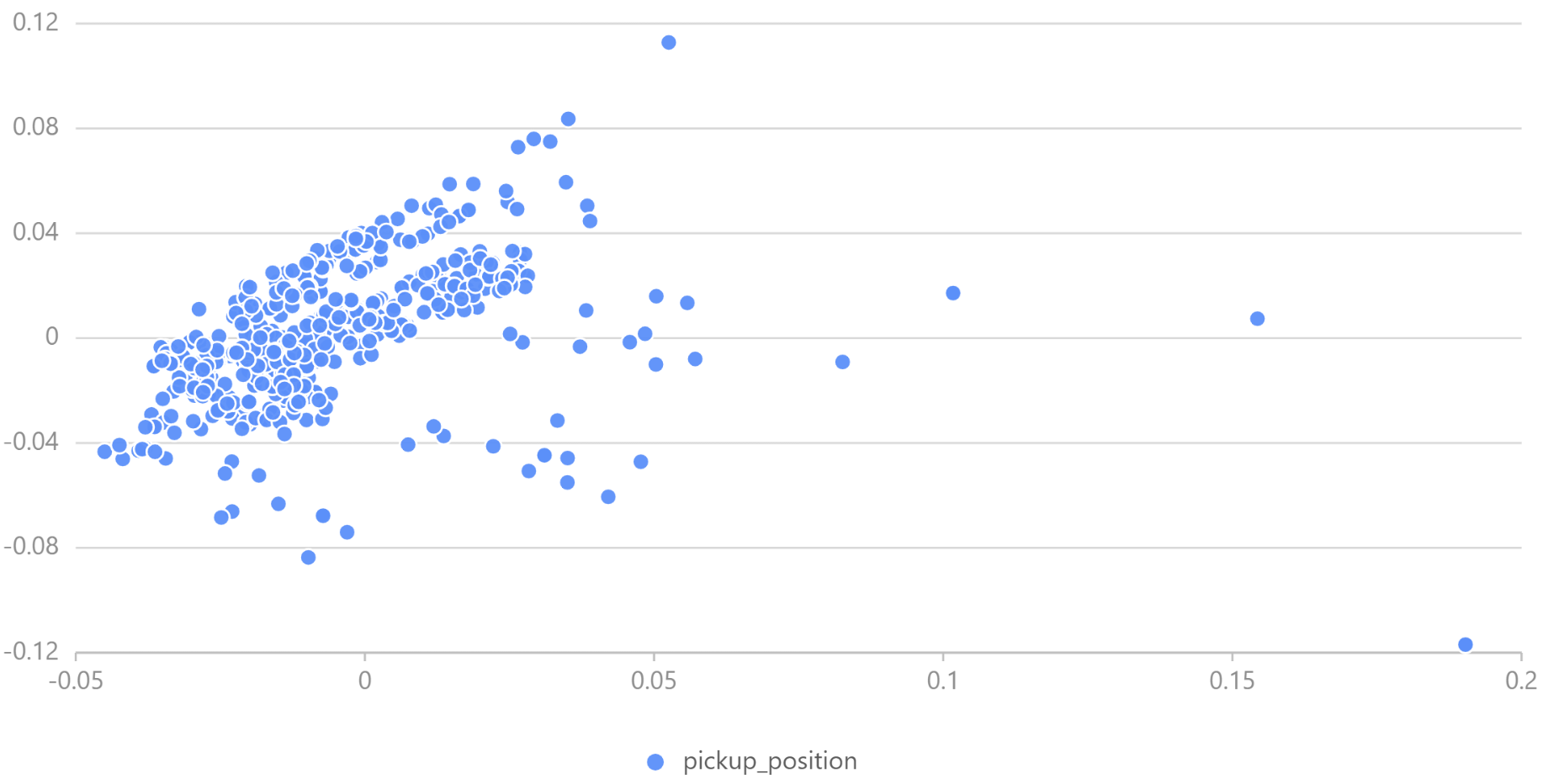 原始数据中的纬度经度信息集中在 40.70 °N 至 40.80 °N 及 73.94 °W 至 74.02 °W 之间,数据间位置特征差异不够显著,使用 PCA 来转换经度和纬度坐标,有助于 XGBoost 决策树的拆分,DolphinDB PCA 函数使用详见pca。