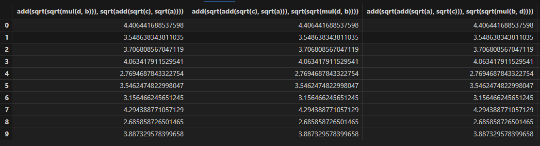 - 第一列为 program 列,STRING 类型,用于存储得到的公式;