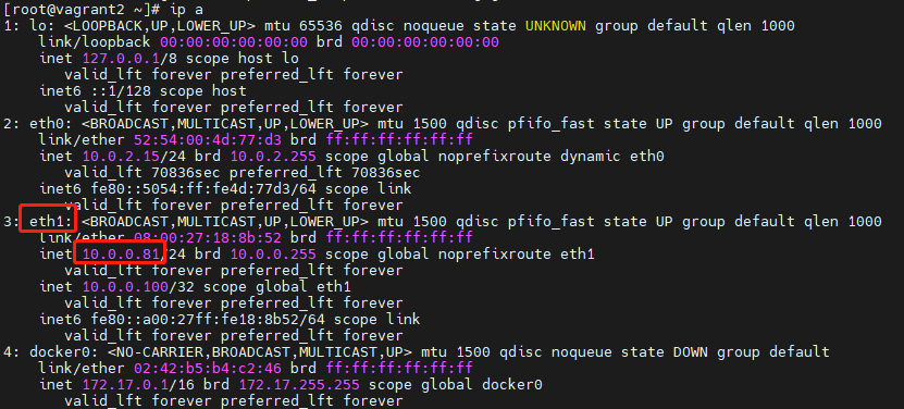 例如,通过以下命令查看本节点 IP: