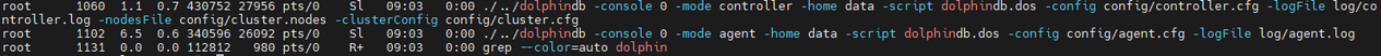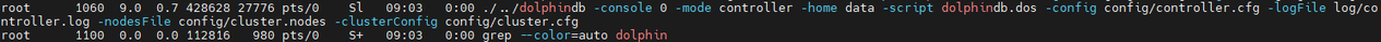 ps aux|grep dolphindb返回如下信息说明控制节点启动成功: