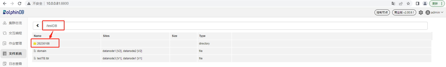 /path/to/directory):unzip dolphindb.zip -d </path/to/directory>注意:安装路径的目录名中不能含有空格字符或中文字符,否则启动数据节点时会失败。