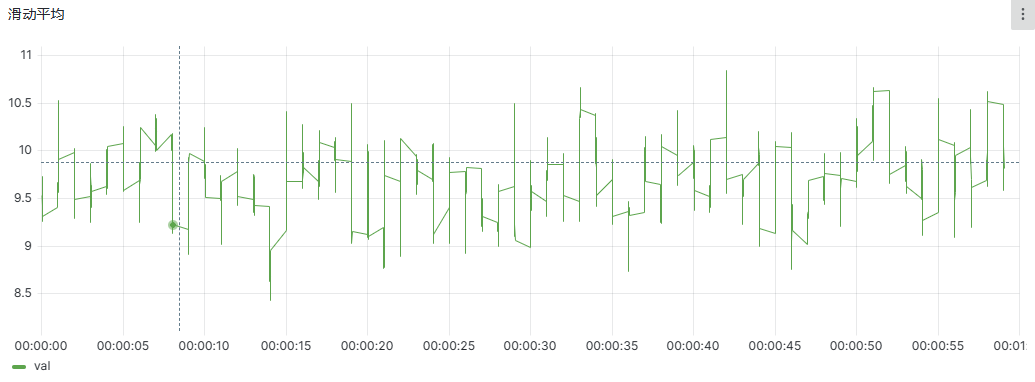 timer t=select ts,v1 from pt where deviceid='d001', ts between 2022.01.01 00:00:00.000 : 2022.01.01 00:00:01.0002.3.2. 数据分析(降采样,滑动平均计算)