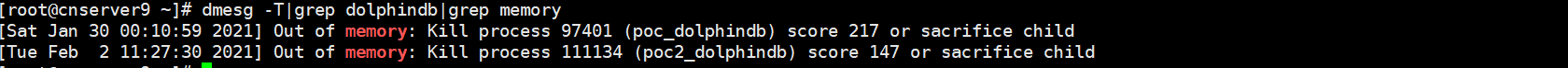 dmesg -T|grep dolphindb