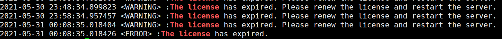 第三种:查看节点运行日志是否打印了如下信息:The license has expired,判断是否为 license 到期而关机: