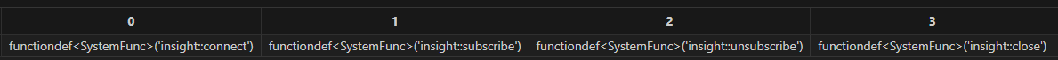 loadPlugin("./plugins/insight/PluginInsight.txt")loadPlugin 函数正常返回则插件加载成功,以 VS Code 为例,首次加载成功后返回的部分信息如下,返回值是 INSIGHT 插件提供的所有函数,至此插件安装与加载已全部完成:
