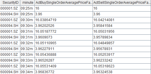 委托买卖金额是对一段时间内委托订单的买卖方向的资金总量进行统计。由于深交所的市价订单的价格在逐笔委托表里的价格不是一个成交价格(一般标记为0)。因此统计计算委托金额时,我们需要在逐笔成交记录中找到最近的成交价格来作为其近似值。