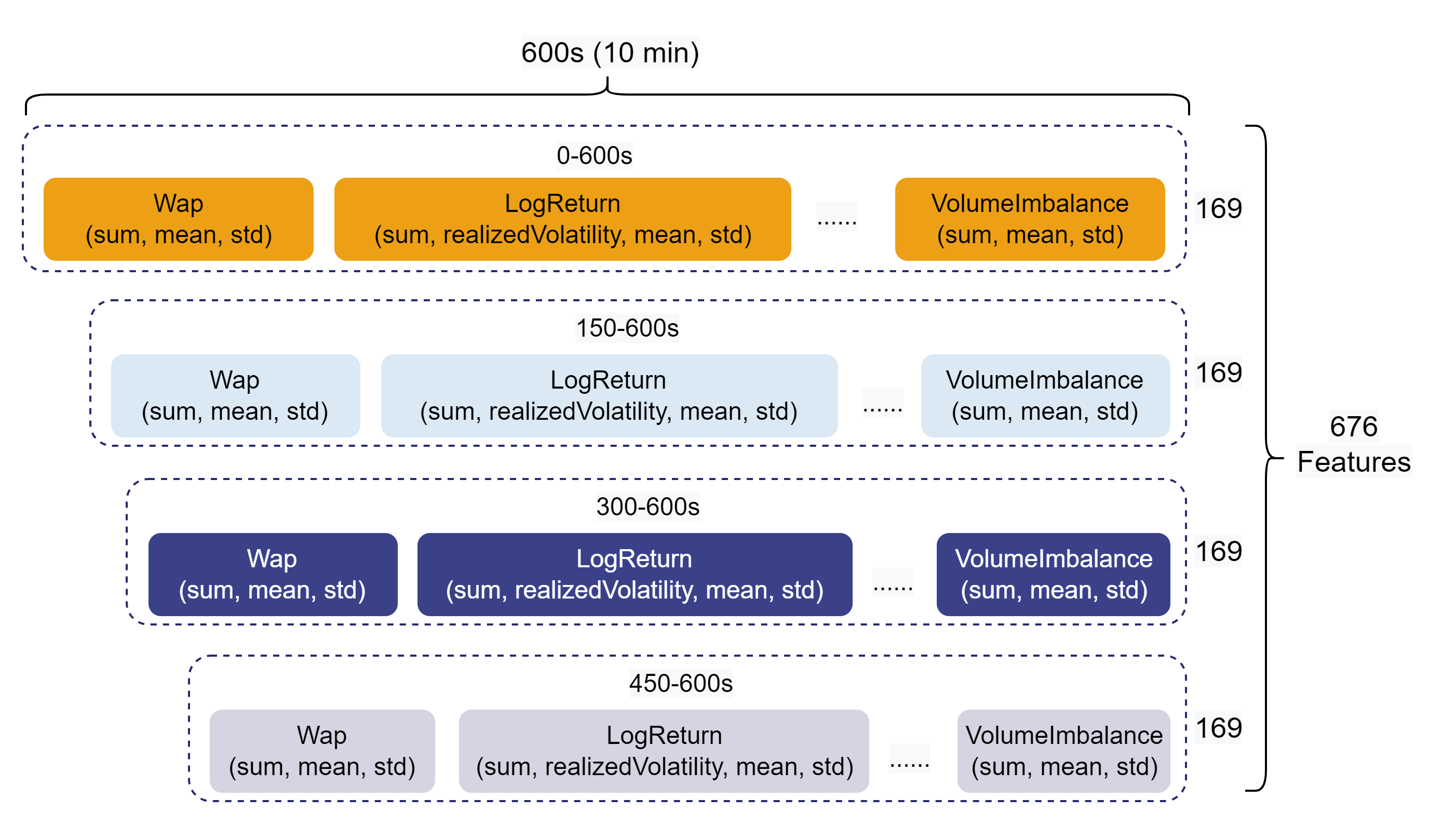 10 分钟的快照数据最终形成 676 维的聚合特征,如下图所示: