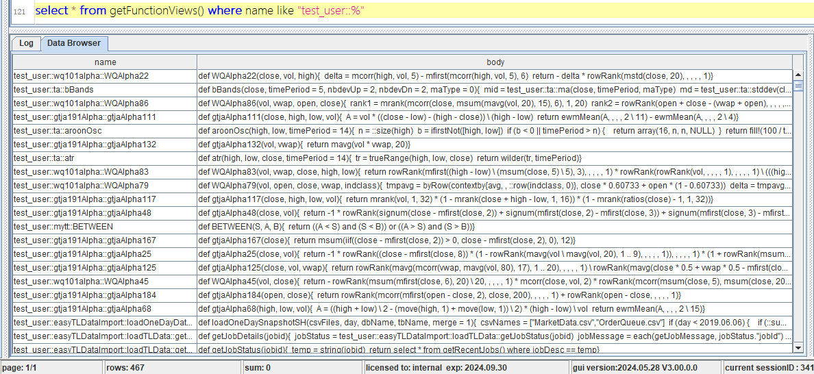 - 通过任意客户端工具连接 DolphinDB Server 后,调用添加函数视图的接口即可添加,并且具有用户或用户组级别的权限管理功能。