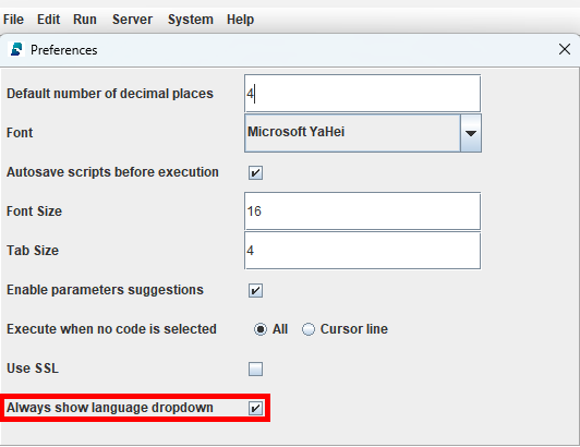 使用前,应在 DolphinDB GUI 中确保语言下拉菜单已开启:点击 File"../modules/easyTLDataImport/easytl_data_import.md"guage dropdown** 复选框。