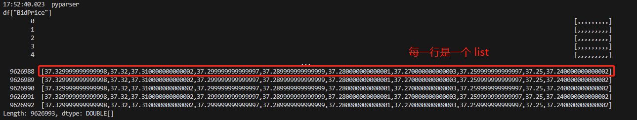 apply函数,也可以考虑将其通过 values 属性将 Series 转化为 DolphinDB 的类型,使用 DolphinDB 的内置函数,比如df["BidOrderQty"].values[0]取 Array Vector 的第一列。使用