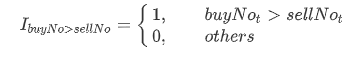 其中 tradeQtyi 表示 i 时刻的成交量;actVolumet 表示 t 时刻起的前 lag 笔订单的主动成交量之和;totalVolumet 表示 t 时刻起的前 lag 笔订单的总成交量;指示函数 I 含义如下: