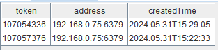 status = redis::getHandleStatus()返回结果如下,可以看到表中有 token、address、createdTime 三列。其中 token 是连接的标识,getHandle 接口可以通过该 token 获取连接句柄;address 连接的 Redis server 的 "ip:port" 网络地址;createdTime 是该连接创建的时间,如下图: