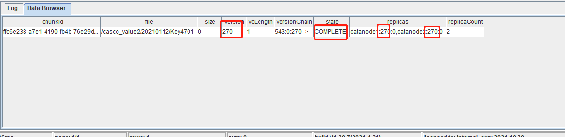 }查看该 Chunk 的状态,如图所示,版本一致,状态变成 COMPLETE。