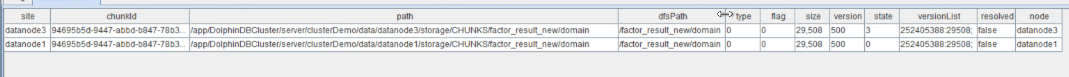 比如,通过 select * from pnodeRun(getAllChunks) where chunkId=xxxx 查询数据节点元数据的结果如下: