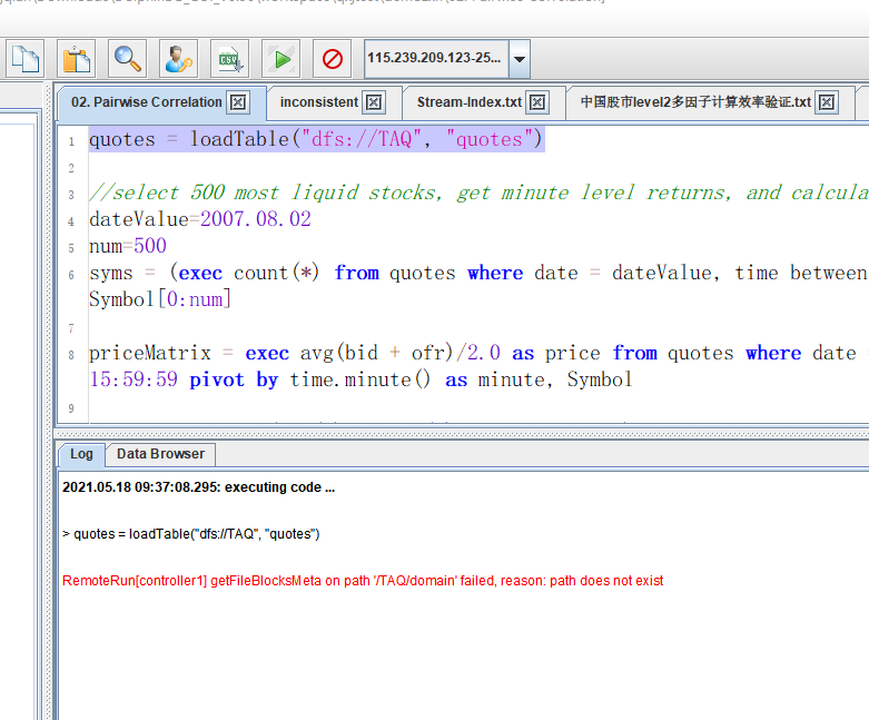 dropPartition(database("dfs:/"+dbName),t,,true)注意:假设执行查询 能正常返回数据,然后 dropPartition 语句,会报错:Failed to find physical table from Table_Name when delete tablet chunk