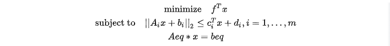 res = socp(f_1, G, h, l, q, Aeq, beq)