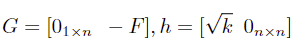 G = concatMatrix([G, concatMatrix([GY, matrix([-1]) ] ) ], false) // || [2Uw, -y] +[0 , 1] ||2 <= y + 1 y