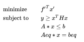 二次规划问题为线性约束条件下的二次目标函数的最优化问题,可以直接通过 DolphinDB 中的 quadprog 或转换为二阶锥问题进行求解。原问题形式为: