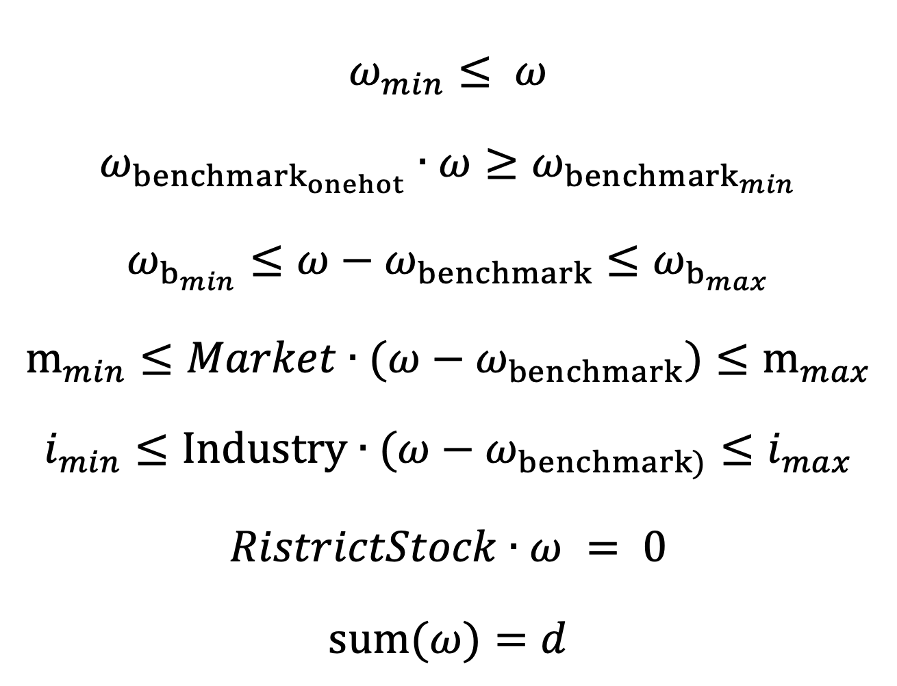 Aeq = concatMatrix([one_vector, transpose(matrix(restrict_stock))], false) // 目标个股权重限制、公司禁用股票限制