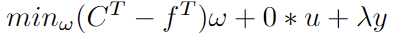 // minimize f^T * w + 0 * u + lamda*y 引入新的求解变量