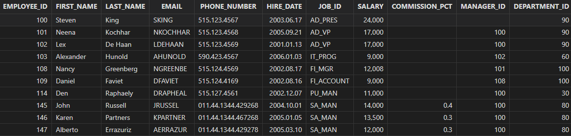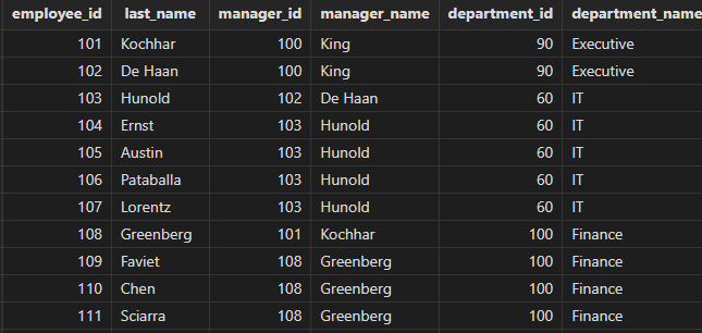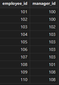 select e1.employee_id, e1.manager_id from employees e1 inner join employees e2 on e1.manager_id = e2.employee_id order by e1.employee_id, e1.manager_id