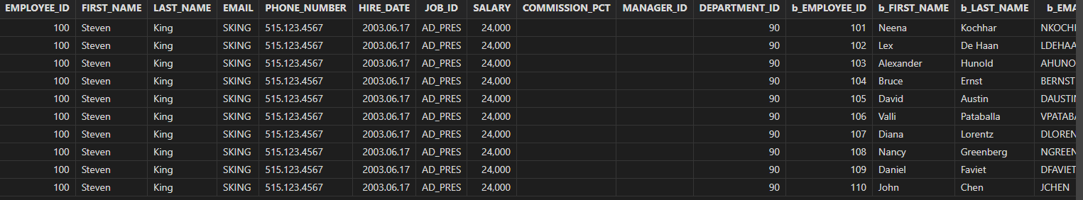 select * from employees a cross join employees b where a.employee_id <> b.employee_id