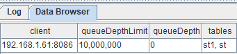 在GUI中运行getStreamingStat().pubConns查看表内容: