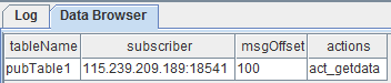 比如存流数据发布表名称为pubTable1,发布了100条记录。 有一个订阅从offset=0开始,action名称为" act_getdata"。那么当订阅完成之后,用getStreamingStat().pubTables 查看内容为: