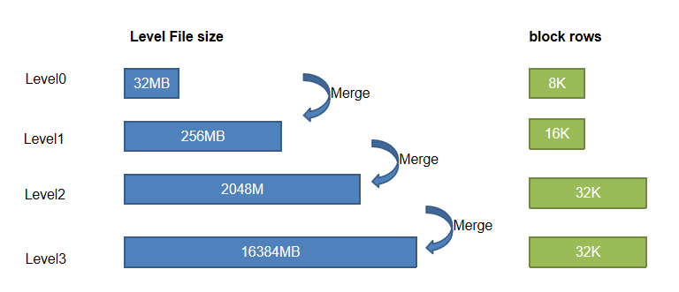 注 1: 同属于一个 sortKey 值的数据不会被拆分到不同的 Level File 文件。因此实际场景我们会发现一个 Level File 的文件可能会大于 32 M,若一个 sortKey 值对应的数据量特别巨大,甚至可能达到更高!