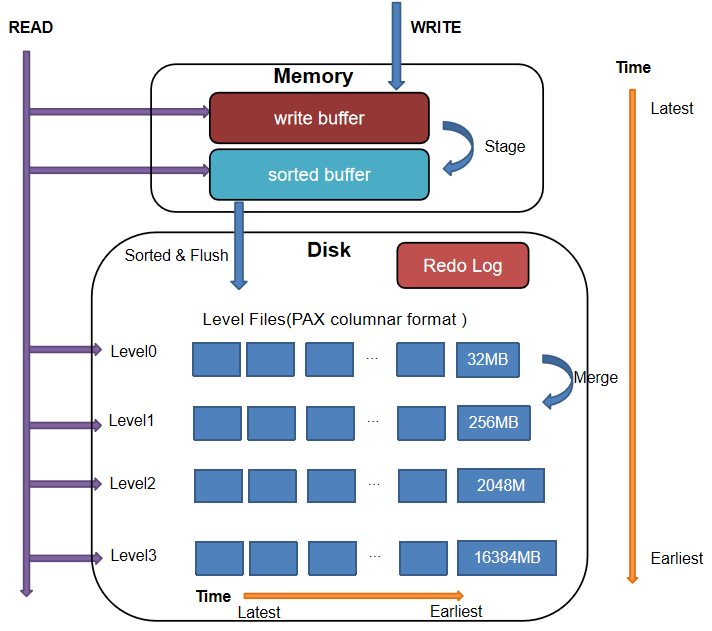 | 资源开销(仅列出两者存在区别的点) | 内存:排序开销,索引缓存;磁盘:合并 Level File 的 IO 开销。 | 不存在左述开销 |