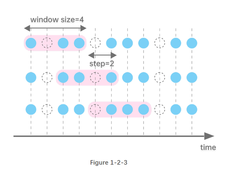 图1-2-3 指定窗口大小为4个时间单位,每次向后滑动2个时间单位。