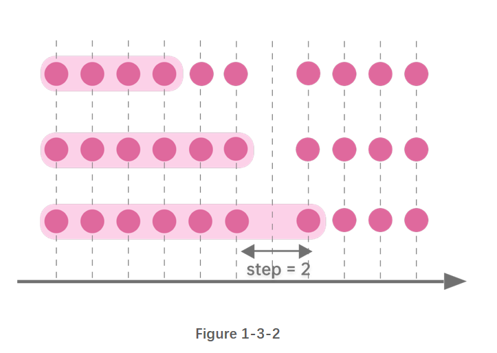 图1-3-2 窗口右边界每次右移2个时间单位,窗口大小累计增加。
