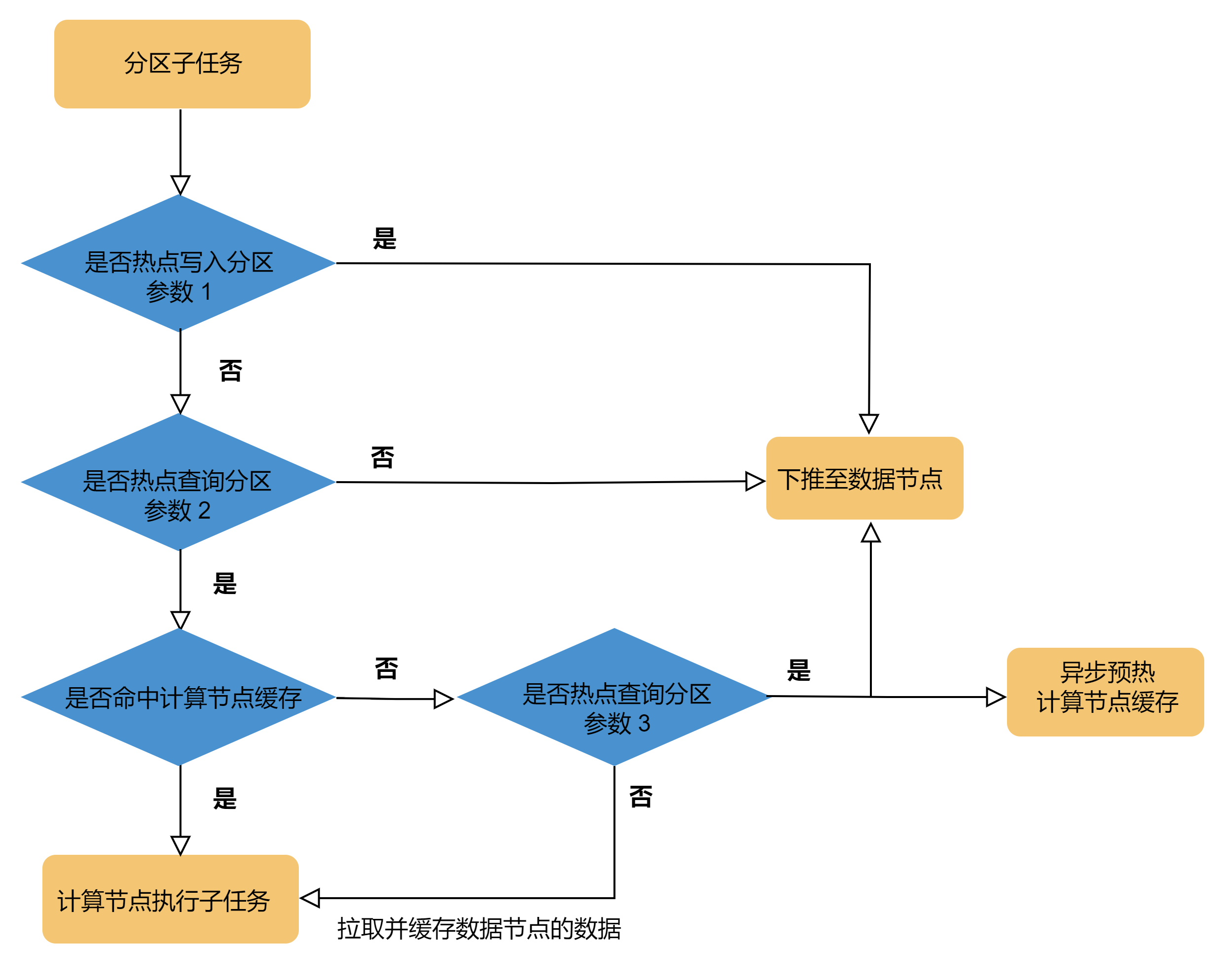 • 不缓存热点写入的分区:此类分区的查询请求将直接下推至数据节点执行,避免频繁传输无效缓存数据。