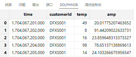 查看数据库中前 5 条数据,time 列数据符合预期: