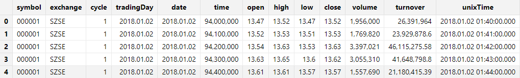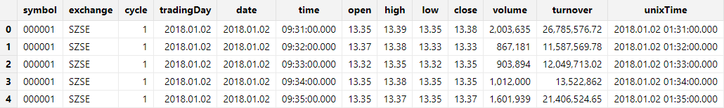 为例,其 time 列以数值形式表示时间,例如以 9:31:00.000 表示为 93100000。针对这种场景,可通过