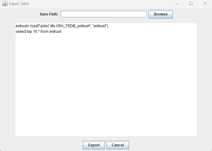 saveText(entrust_tb,"/home/appadmin/hmy/data/entrust.csv")将数据库数据导出为 csv 保存到客户端