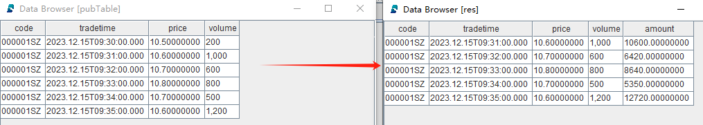 tableInsert(pubTable, "000003SZ", 2023.12.15T09:32:00.000, 10.7, 600)