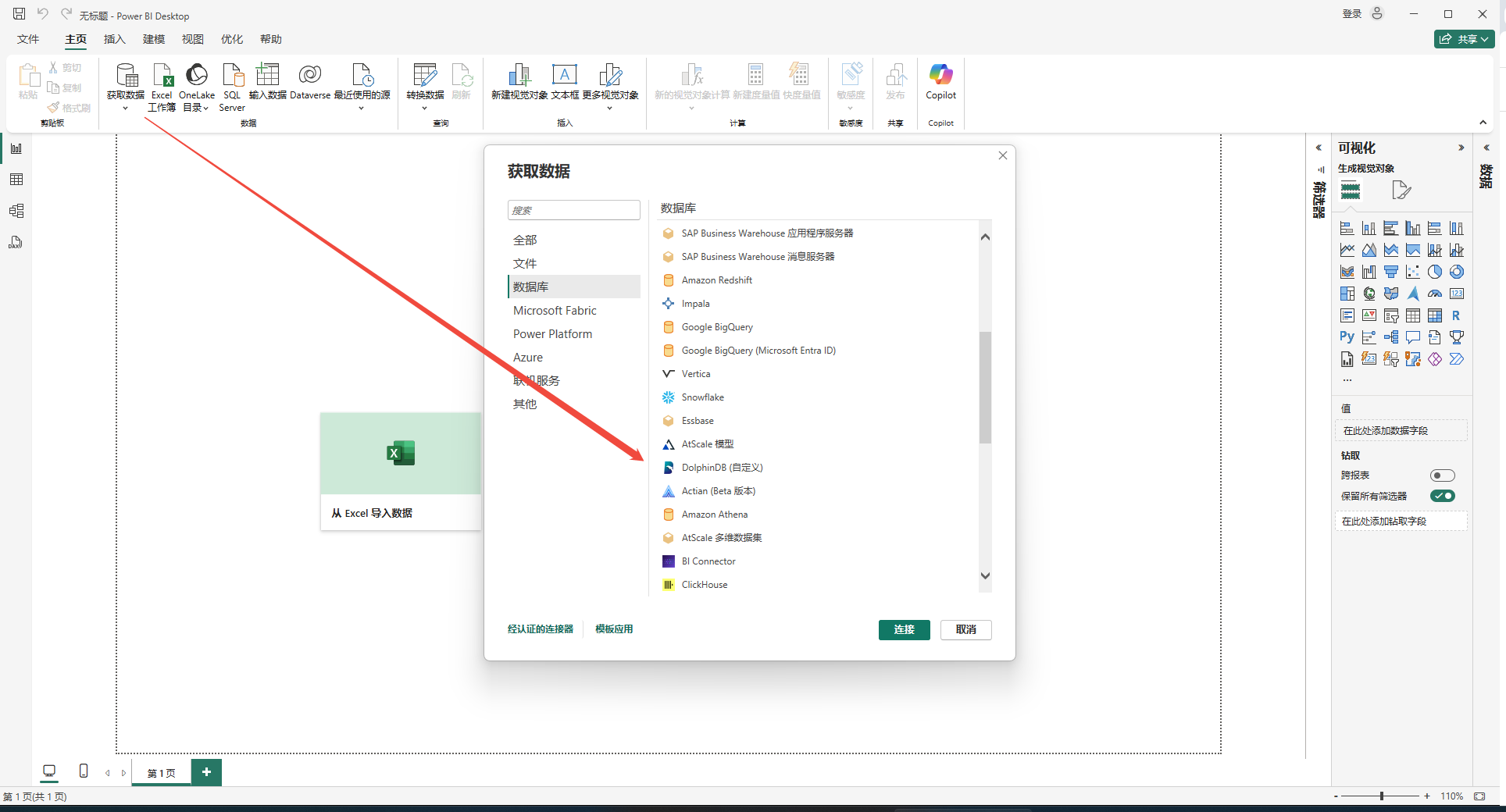 完成数据导入后,可以通过创建自定义报表,调用 Power BI 的视觉对象进行可视化操作。